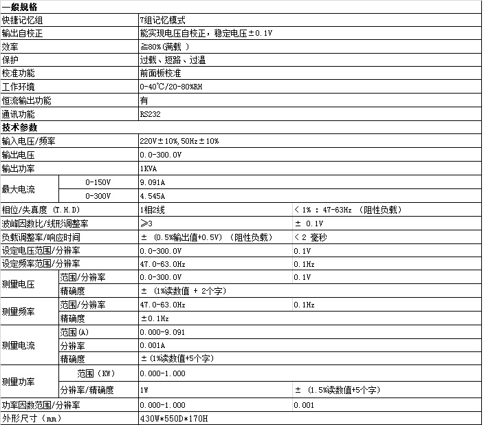 2. 全范圍可調(diào)輸出電壓及頻率設(shè)定范圍(0 - 300V,47 -63HZ);