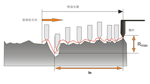通過測針的自動滑行將粗糙度曲線描繪下來并進行計算既可獲得這條粗糙度曲線的算術(shù)平均值(Ra)也可同時獲得深度值(Rmax)