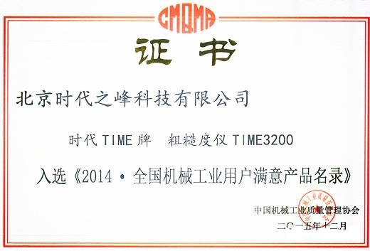 TIME3200入選《2014▪全國機械工業(yè)用戶滿意產(chǎn)品名錄》