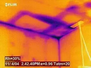 一個典型的實(shí)例是尋找地板加熱系統(tǒng)發(fā)生滲漏的位置。在紅外熱像儀的幫助下加熱系統(tǒng)的滲漏點(diǎn)可以被檢修人員發(fā)現(xiàn)并及時維修。精確確定滲漏點(diǎn)位置可以避免不必要的開挖過程,節(jié)省開支。